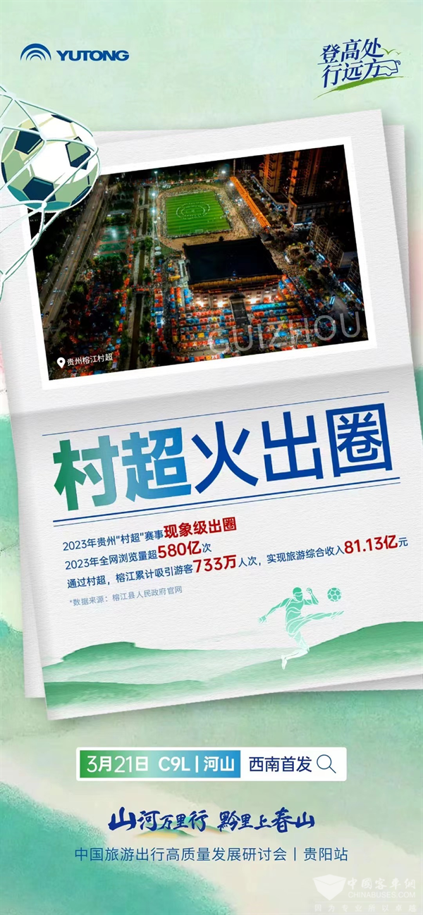 完美作业网有免费视频获悉,第二届贵州“村超”总决赛已经于2024年3月16日拉开序幕,目前赛事仍在进行中。与此同时,中国旅游出行高质量发展研讨会,也将于3月21日在贵阳召开,届时宇通客车的新品C9L|河山也将首次在西南地区解开神秘面纱。我们也期待,宇通客车的这款产品能为行业带来新的风向。