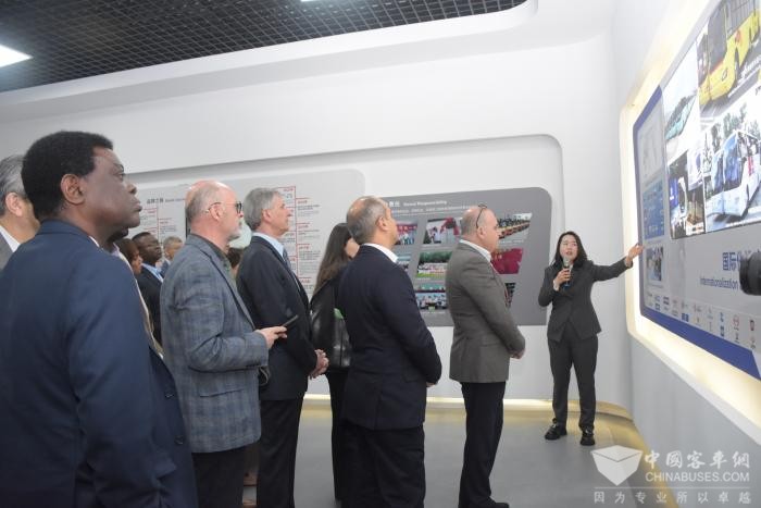 历经25年发展,苏州金龙已经拥有75万平米现代化客车制造基地,客车产品遍布全球130多个国家和地区。走进企业展厅,大大小小的客车模型瞬间吸引了驻华使节的目光。大家一边参观展厅,一边了解苏州金龙的发展历程、技术创新以及全球销售情况等。苏州金龙在新能源汽车、智慧交通、智慧出行等方面的创新开拓与深入实践,以及产品全生命周期管理的服务给驻华使节留下了深刻印象。