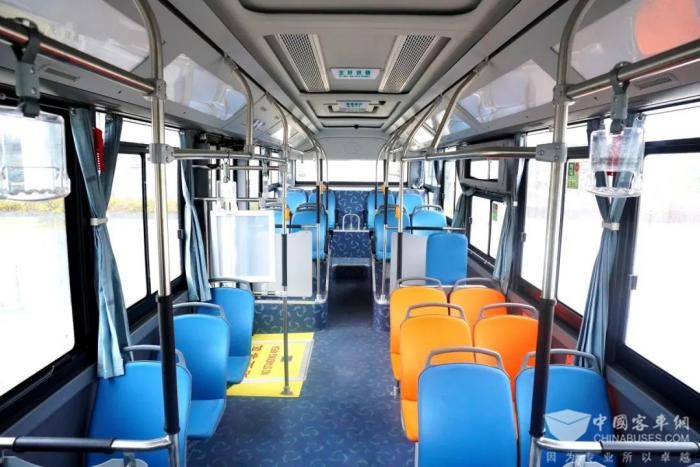 车内空间为全通道结构,满足低地板、低入口的适老化交通出行需求,为乘客带来开阔的内部空间、提升了活动便利性。整车配备了氢泄漏监控、防氢聚集、排空稀释等安全防范措施,更确保了车辆运行过程中的安全性。
