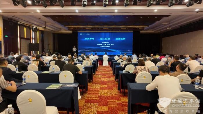 苏州金龙产品规划部部长刘宝坤在会上详细向与会代表们介绍了新V系客车在设计、研发、制造等诸多方面的升级改进。新V系客车采用了全新平台打造,车型实现8-13米全覆盖,多种动力能源可选,从旅游、客运到公交全场景应用,从国内到国外面向全球市场。新V系全部采用全三维模块化设计,通过模块化设置、通用化理念,从零部件的下料开始就引进了先进的激光切割工艺,用机器人焊接、喷涂,内饰全部实现了无明钉安装,用设备保证制造的精度和品质,打造了1毫米工程。此外,新V系首次在客车行业实现标配智能座舱,为乘客的智能化乘坐体验及客户的智慧化管理提供坚实保障。