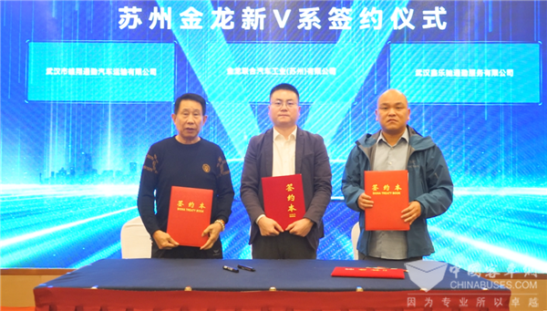 通过前期的了解试驾,苏州金龙湖北销售部经理王安栋在推介会现场分别与武汉市雄翔通勤汽车运输有限公司副总经理李佑生、武汉鑫乐驰通勤服务有限公司总经理李志立签署了购车协议,而这只是苏州金龙新V系深入湖北文旅行业,为游客提供更优质服务,为通勤公司实现运营效益提升的开始。