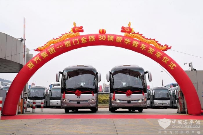记者了解到,为应对新业务板块的运营需求,首汽旅游车公司于近期购置了30辆金旅新凯歌,投入到班校车通勤、团体旅游等场景,单日运送人次在1200人左右。