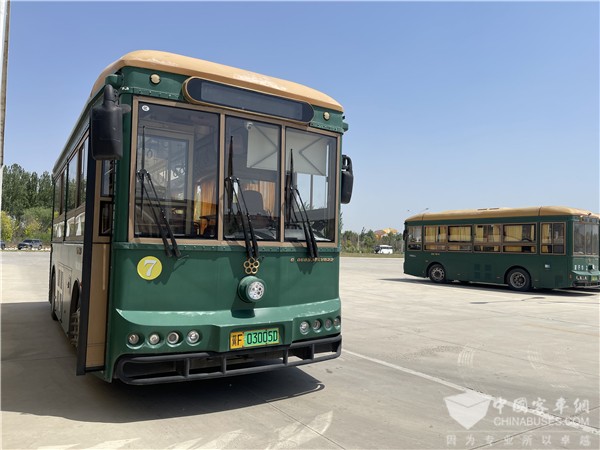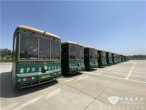 白洋淀景区旅游客运集散中心南门外,一辆“邮差绿与芥黄色”相间涂装的仿古巴士远远驶来。车辆进站途中,不时见到排队游客拍照留影。这趟公交线路便是格力钛新能源2021年在白洋淀开通运营的景区接驳旅游快线车。