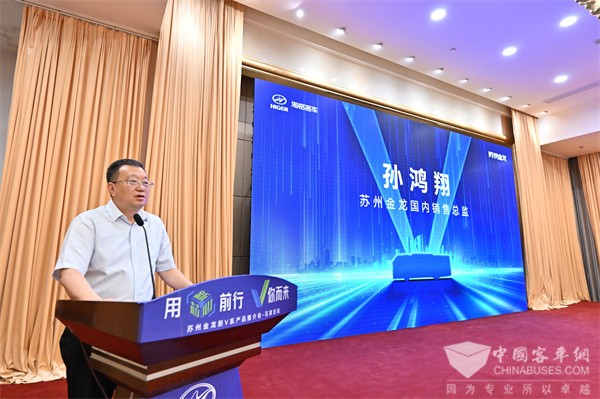 活动现场,苏州金龙国内销售总监孙鸿翔向与会嘉宾分享了开发新V系的初衷。作为客车行业的领先企业,苏州金龙始终坚持以技术创新为先导,紧扣旅游客运行业发展脉搏,深度洞察客户需求。新V系客车是苏州金龙历经三年潜心研发,全员参与,投入巨资,倾力打造的全新智慧客车。它基于对客户运营需求的深入理解和精准把握,实现了产品性能、品质和效率的重大提升,将成为旅游客运业提质增效的得力助手。