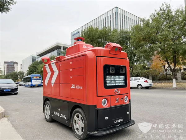 图:金龙自动驾驶物流车在北京中关村医学工程健康产业化基地运营