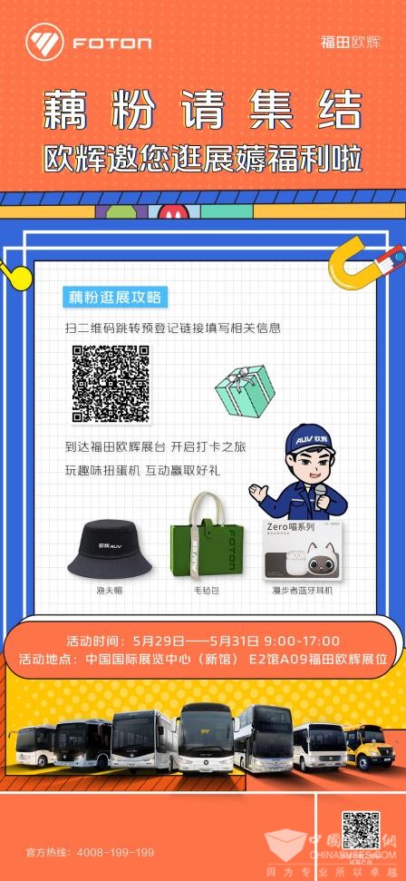 在本次展会上,福田欧辉还邀请了网红大咖和技术专家现场直播,带你领略客车和道路运输的最新鲜最前沿的资讯。直播期间,福田欧辉客车抖音直播间将进行多轮抽奖,为粉丝送上宠粉福利!锁定福田欧辉客车抖音官方直播间,参与直播互动即有机会抽中限量版车模、唱吧小巨蛋、智能水杯等精美礼品。5月29日下午2:00,记得来福田欧辉客车抖音直播间薅羊毛!