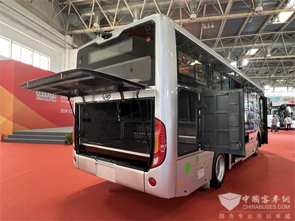 海格KLQ6816GEV还支持个性化定制,可设定行李舱后开门、两侧及车内开门,行李舱容积达2.3立方米,轻松满足货物装载需求。此外,行李舱还配备了内顶灯、烟雾报警器、摄像头等安全设施,为安全运营提供了有力保障。