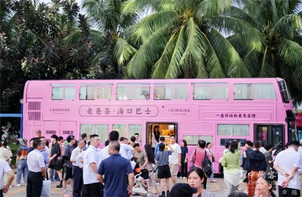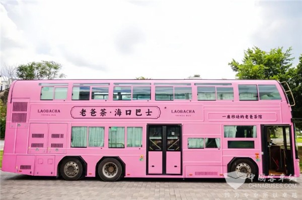 在外观设计上,这辆“老爸茶·海口巴士”以粉色为底色,打造南洋复古风;在体验内容设计上,该巴士以“喝茶看风景,一路好心情”为主题,摒弃传统交通工具概念,让城市、人、茶三者“畅意对话”,为市民游客带来“沉浸式”新体验。