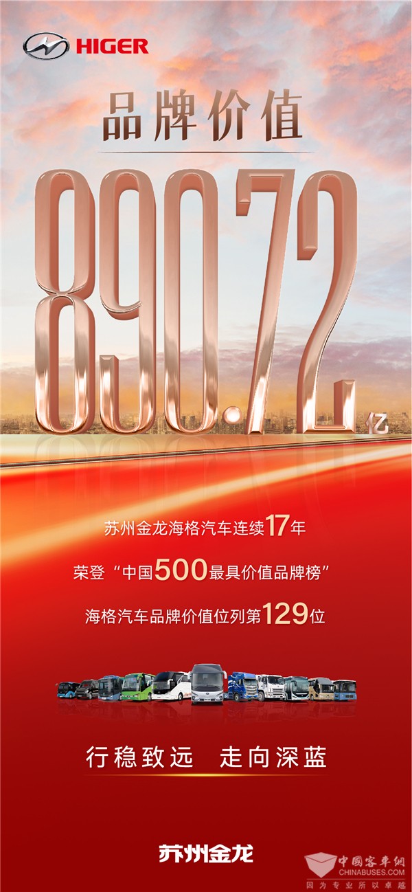 890.72亿! 苏州金龙海格汽车连续17年上榜《中国500最具价值》品牌