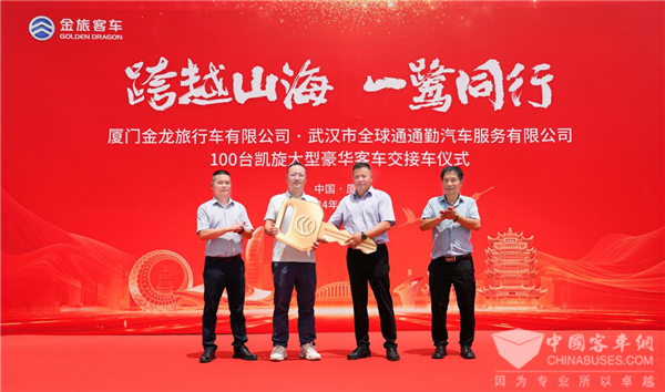 2024年6月17日,厦门金龙旅行车有限公司(以下简称“金旅客车”)与武汉市全球通通勤汽车服务有限公司(以下简称“武汉全球通”)在厦门共同举办了“跨越山海 一鹭同行”100辆凯旋大型豪华客车交接车仪式。该批车辆的交付,标志着双方合作的进一步深化,将为武汉市通勤市场注入新活力,共同推动城市交通合规化、绿色化进程。