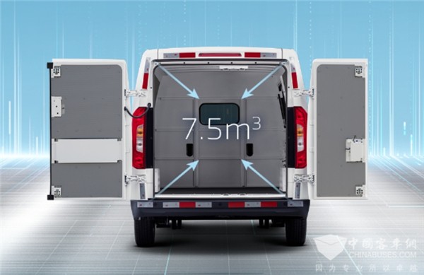 精灵智蓝的车厢设计充分考虑用户需求,具有VAN类车型必备大空间的同时,还让货物存放装卸都更加省时省力。货厢容积达7.5m³,内长3120mm,内高1400mm,用户可以轻松存放4米板材货物;1260mm的轮间距可帮助用户实现板材、托盘自由装载;并且货厢、轮包设计方正,使得货厢空间利用率更高。不仅如此,精灵智蓝还拥有550mm超低货台,车辆后尾门可实现90°/180°/270°多角度对开,多处细节全方位实现货物装卸的方便快捷。