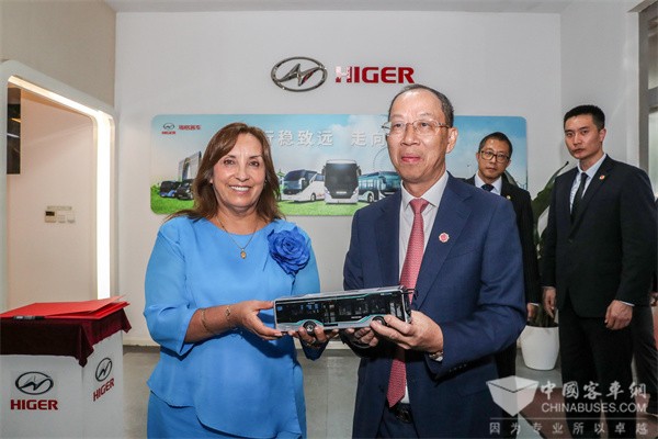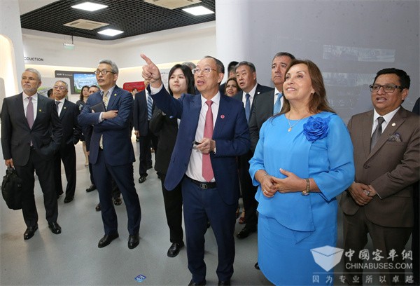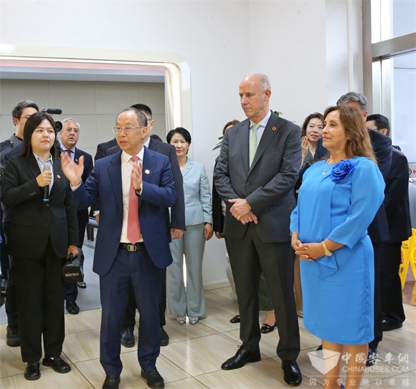 2024年6月27日下午,首次访华的秘鲁共和国总统博鲁阿尔特一行到苏州金龙参观访问,受到了苏州金龙总经理黄书平的热情接待。