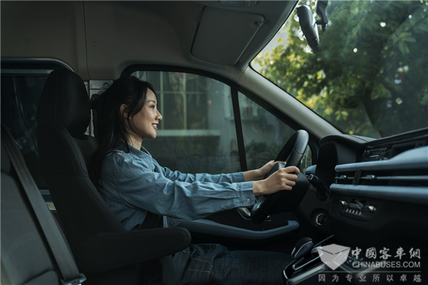 近年来,采购轻客作为企业自备用车愈发普及。作为既能满足日常配送运力需求,还能兼顾班车接驳的全能车型,大V通过精准的客/货差异化底盘调教,降低18%过弯侧倾,减弱21%颠簸冲击;上坎柔韧,下坎干脆,全工况游刃有余。其标配方向盘4向调节,行业首配电子助力转向,集成L2.5级辅助驾驶。大V低速轻盈更省力,高速沉稳更安全,带来更优异的驾乘体验。