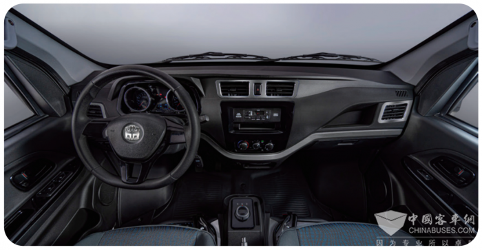 中通T6的驾驶舱采用较为经典的设计,简洁又大方。三幅式方向盘中央印有中通LOGO,一根银色饰调贯穿着整个横向空间,点缀效果明显,也拉宽了视觉宽度。