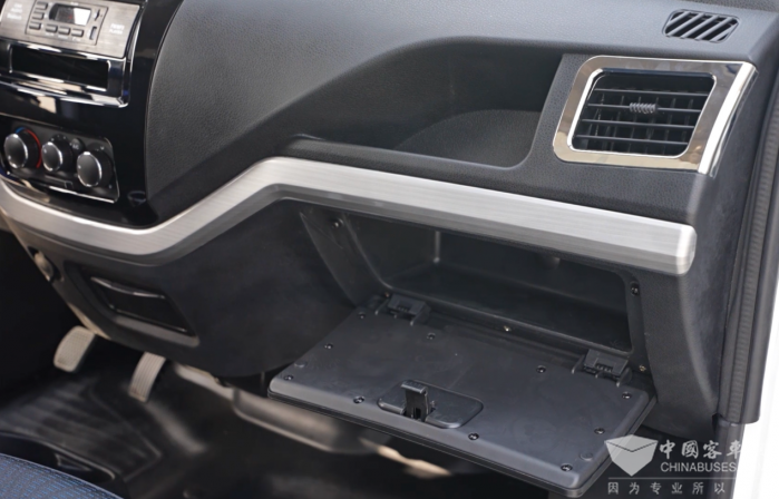 手套箱上方有外露的储物空间,加上门板处的储物格,中通T6的储物能力比较优秀。