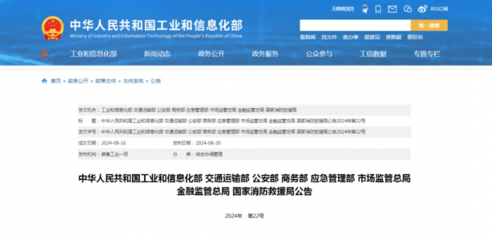 2024年8月21日,工业和信息化部、交通运输部、公安部、商务部等八部门联合发布公告称,在确保整车安全的前提下实施新能源城市公交车辆动力电池更换工作,并遵循“谁主张、谁负责;谁更换、谁负责”的原则。
