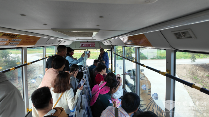 除了视野的升级,这批观光车在座椅布置上也进行了重新设计。不同于常规正面排布的设计,这批观光车采用两边面向的设计理念,方便游客们近距离观赏及投喂东北虎,与老虎进行亲密接触,极大地提升了观赏的趣味性和互动性。