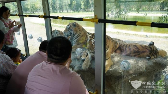 同时,车身外围还特别加了一层方钢,让老虎爬车更有抓力,与游客互动也更深入了。这些点滴细节都是为了进一步强化游客的体验感。而安全作为车辆首要因素,这批观光车更是从轮胎到每个防护重点都加强了安全保障,极大满足了游客追求惊险刺激及与虎亲密接触的渴望。