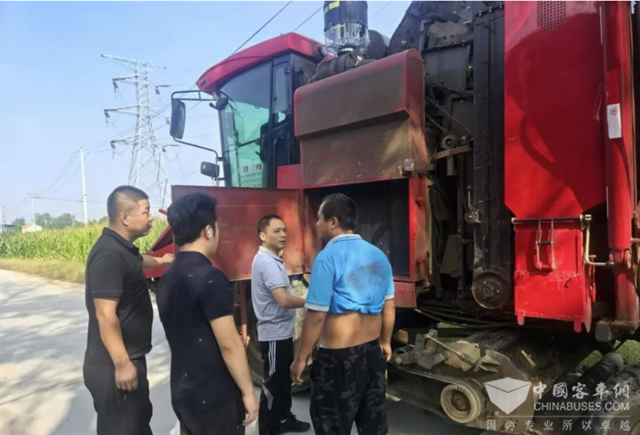 东康服务团队走进山西忻州,为当地农机客户送上关怀,服务人员现场对设备进行全面检查,并为客户介绍了发动机的正确操作保养方法,以及仪表常见故障灯应急处理方法。