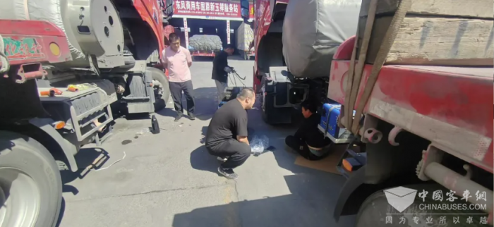 客户关怀走进苏州,东康服务人员对当地客户车辆进行了全面检查,因车辆常在西北运行,服务人员现场对客户进行了车辆寒区使用操作培训。
