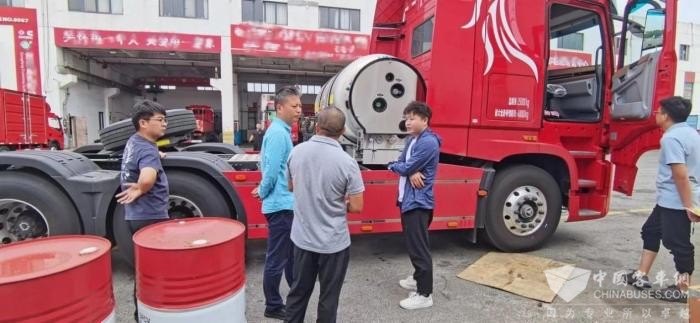 东康服务团队走进汇森物流公司,该公司共有25台配装东康Z15N燃气机的车辆,技术人员现场与客户就发动机正确操作使用进行交流,并与驾驶员沟通冬季注意事项以及相关故障应急处理方法,助力客户盈运。