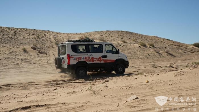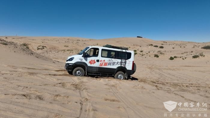 英雄会,会英雄!此次来到戈壁茫茫的巴丹吉林沙漠,依维柯4×4的运动细胞更是被完全激发。面对峰峦陡峭,高低错落高达百米的沙丘,动力强劲、爬坡能力超60%的依维柯4×4在“鸣沙王国”中攀爬俯冲游刃有余,低滚阻AT花纹无内胎轮胎增强了抓地能力;高扭矩高速比使得加速起步反应敏捷,配合灵活精准的大缸径转向器,在驾驭弯道时更从容,让驾乘者享受肾上腺素飙升的速度与激情。巴丹吉林沙漠还分布着很多色彩斑斓的海子,驾驶车辆在湖泊附近行驶,即使路面湿滑,依维柯4X4“全时四驱+三把锁”这样的顶配设计也可以根据路况实时调整动力分配,始终保持稳定的行驶状态;依维柯4×4还对变速器、燃油系统等关键部件进行了防水处理,让行程更加安心无忧。