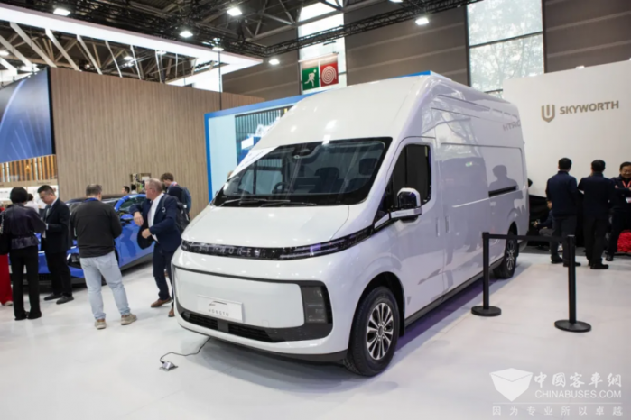 创维鸿途封闭式VAN车,配备电动侧滑门,造型方正,能有效提升车辆的装载空间。此次亮相车型采用高顶结构,对开式270°尾门,日常作业更加方便。