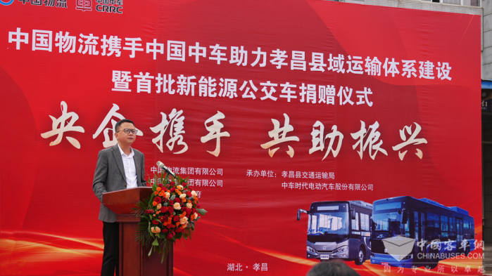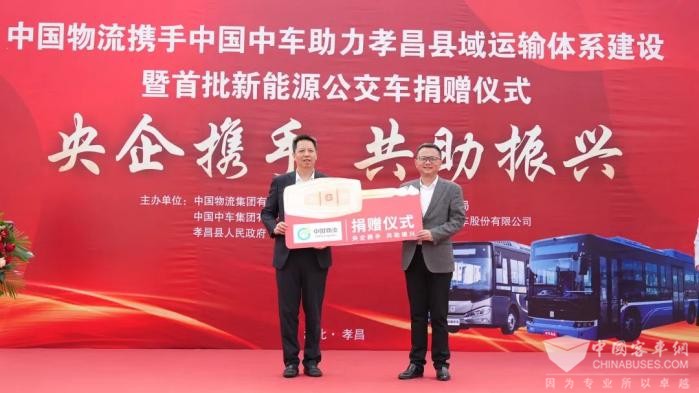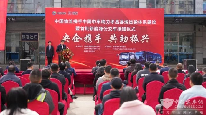 2024年10月22日,中国物流集团携手中国中车向孝昌县捐赠12台新能源公交车,助力孝昌交通运输体系建设。