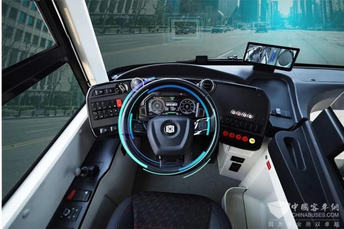 智能化领域,中通客车更是带来了拳头产品——N12智能驾驶客车。该车基于N系平台打造,具备L4级智能驾驶功能。车辆行驶途中车内电子屏可实时显示车辆位置、站点距离、高精地图、交通信号灯等信息,并可通过高精感知定位设备,精准识别站点,安全停靠。