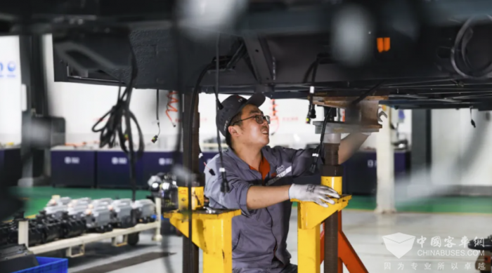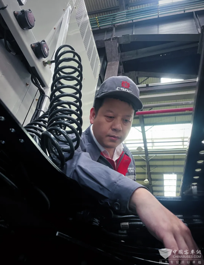 张望那双锐利的眼神,照进了底盘气管路安装过程每一个细节,确保管路整齐有序排布。