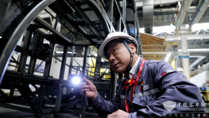 杜忠元把每一道焊缝都当作是一条质量“生命线”,他正一丝不苟地对车辆的每个焊缝进行检查,用匠心精神严把质量关。