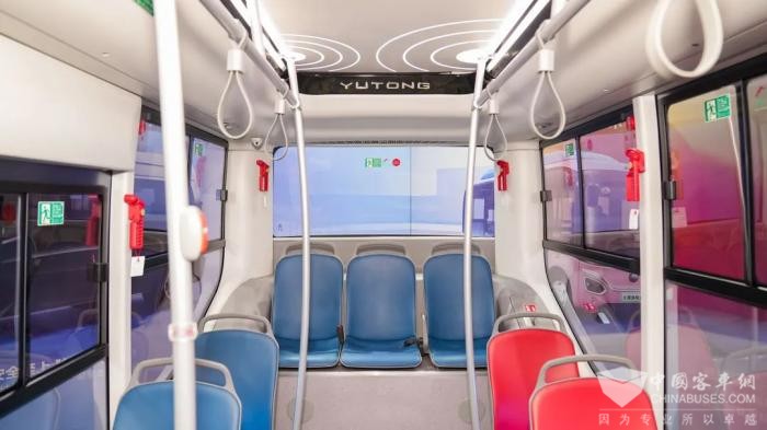 宇萌E6S 2.0的外观设计融合了红点奖设计美学与太空科技的未来感,并可融入定制化城市特色元素;流光溢彩的高端内饰,搭配顶部流动的呼吸灯,交织出灵动、趣味的意境;一级踏步设计,高度仅320mm,无论是老人还是小孩,都能轻松一步登车,配合宽达1200mm的乘客门,体现了对乘客的深切关怀;车内5.19㎡的大平地板面积,站立区域无台阶,不仅能避免乘客意外受伤,同时也能保证乘客的舒适站立;尤为值得一提的是高达15.6㎡的大面积玻璃视窗,让乘客尽享受宽敞视野和通透体验。