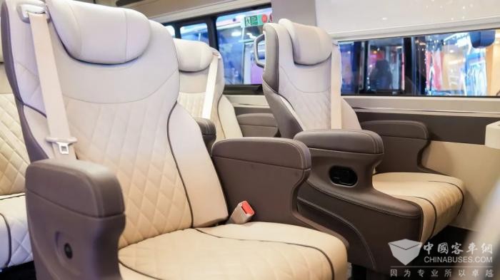 本次展会展出的是宇通天骏V6豪华版,一经亮相便引来众多行业客户驻足围观。现场的宇通天骏V6豪华版采用9座布局,配备独立商务座椅,乘坐舒适;加宽滑移门设计,搭配电动活动踏步,内部高1840mm,上下车便捷;尾部双开门大行李舱,容积达1.1m³,可容纳8个26寸+4个20寸行李箱,适应场景更丰富。