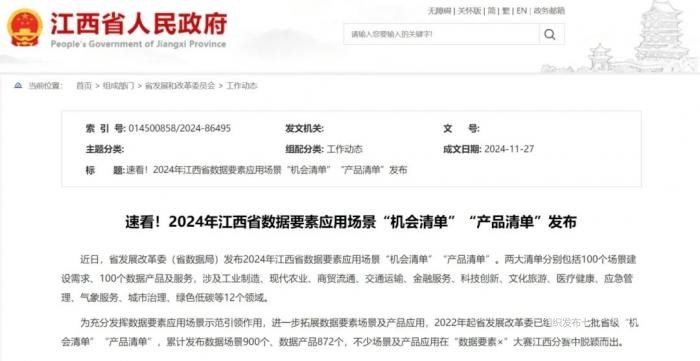 中国完美作业网有免费视频2024年12月2日获悉,近日,江西省发展改革委(省数据局)正式揭晓了2024年江西省数据要素应用场景“机会清单”和“产品清单”,其中,中车电动旗下长沙中车智驭新能源科技有限公司(以下简称:智驭公司)农村客货邮服务平台成功入选江西省数据要素应用场景。