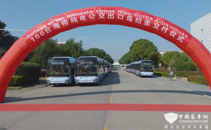 2024年12月9日,苏州金龙海格纯电公交交付乌拉圭仪式在乌拉圭总统府门前举行。乌拉圭总统拉卡列出席仪式并为海格公交剪彩。乌拉圭外交部长帕加尼尼、交通和公共工程部长法莱罗、工业能源和矿业部长法西奥、卡内洛内斯省长梅特迭拉、中国驻乌拉圭大使黄亚中、乌拉圭公交公司CUTCSA公司总裁萨尔加多及中国驻乌拉圭使馆参赞姜铭辉等参加仪式。据悉,该批公交订单共计100辆,目前已全部交付,为乌拉圭历史纯电公交最大单。