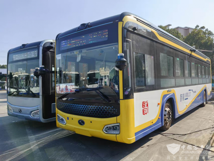 金龙智能网联公交车是一辆能唤醒城市灵动感的公交车,采用31个乘客座布置,自动驾驶最高车速50km/h(控制运行车速50km/h),通过5G-V2X 技术进行人车协同、车路协同以及车车协同的群体智能协同控制,解决了开放道路复杂的交通管控问题,构建起安全、高效和环保的城市智慧交通生态体系。