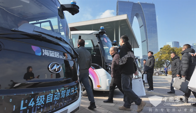 12月12日早上8:45分,阳光洒落在苏州工业园区,为这座现代化城市增添了几分生机与活力。在千琇悦酒店大堂门口,6台红黑白配色的苏州金龙无人驾驶小巴整装待发。在与会领导及嘉宾登车坐定后,无人驾驶小巴车队缓缓启动,平稳地驶出了酒店大门。坐在宽敞明亮的车厢内,众人看着小巴在没有人为干预的情况下自动启停、转弯、识别红绿灯,感受到了无人驾驶技术的便捷与舒适。他们透过车窗,欣赏着沿途的风景,不时点头称赞。