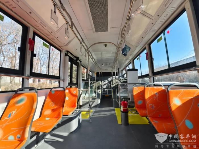 在充电和续航里程方面,车辆搭载宁德时代(CATL)新一代磷酸铁锂电池,每公里电耗小于1度电,在能耗方面做到了行业领先水平;在充电时长方面,车辆快充可实现两小时内充满,其续航里程也可根据公交线路定制,能达到250公里以上。