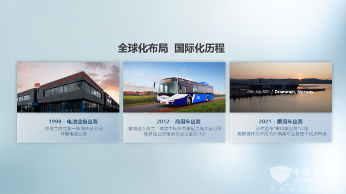 与此同时,比亚迪的国际化战略步伐稳健且成效显著,其全球化征程始于1998年,当时比亚迪的电池业务率先出海,这一举措不仅标志着比亚迪正式踏入国际市场,更为其后续的业务拓展奠定了良好的开端。2012年,比亚迪商用车领域的国际化探索也迈出了关键一步,首站成功进军荷兰市场,并成功赢得了一个区域的大巴订单。