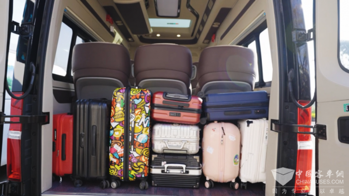 大空间、更舒适,也让宇通天骏V6实力匹配游客出行的真实需求。深度游游客常携带摄影器材、户外装备等大件行李。天骏V6创新设计后置独立行李舱,与客舱物理隔离,车内1890mm超高空间与340mm宽过道,让乘客可自由站立舒展,搭配商务座椅、USB接口及双层储物格,营造“移动会客厅”般的舒适体验。茶花旅游总经理王震潍谈到:“宇通天骏V6车身较高,空间也更宽敞,座椅舒适,不仅极大地提升了乘客的乘坐体验,宽敞的行李舱也完美解决了游客深度游携带大量行李的困扰,赢得了乘客和旅行社的高度赞誉。”