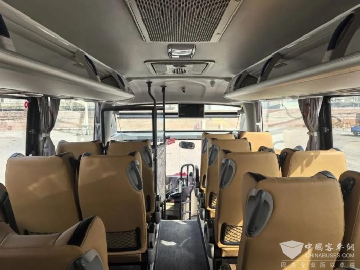 另一款BJ6906城间客车,主要适用于中高端公路客运市场和旅游市场,具有外观新颖、动力十足、节油高效的优势。车身线条流畅,车内配置豪华座椅和独立燃油暖风系统,还可选配多功能智能管理系统和多种人性化设计元素,如USB充电接口、阅读灯、ABS、ESC、胎压监测及报警等配置,为乘客提供更加舒适便捷的出行体验。此外,BJ6906还采用全承载车身结构和轻量化设计,降低能耗和运营成本,助力降本增效。