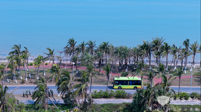 碧波荡漾的琼州海峡畔,中车新能源客车穿梭于椰林海岸间,轻盈驶向零碳未来……