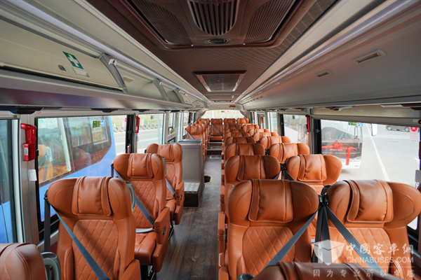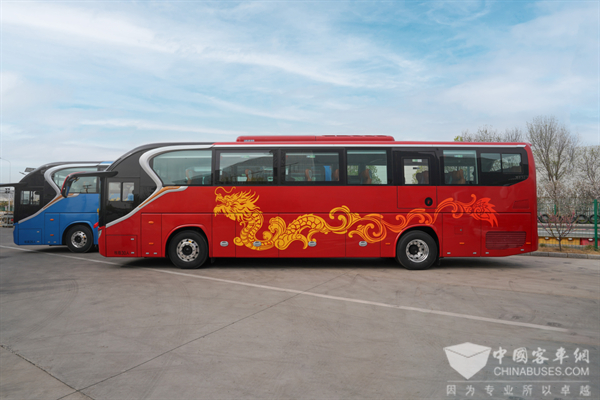 BJ6122采用现代动感的外观设计,造型端庄典雅。内饰方面,车辆配置双密度海绵座椅、仿生学设计内凹式行李架、“穹顶式”中顶,冷暖一体式综合热管理系统,可实现自动调控温度,为乘客提供“陆地头等舱”的乘坐体验。车辆还可配备后风挡板装饰件及吊尾灯的贯穿装饰件,进一步提升整车的颜值与奢华感,让每一次出行都成为享受。
