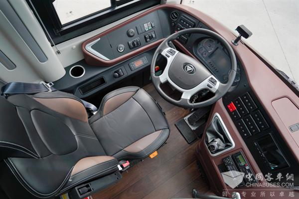 BJ6122驾驶区空间开阔,搭载智能车载管理系统,可实时调节动力输出,确保行车稳定性。车辆还可配备360°环视系统、车道偏离预警、前车碰撞预警等多项主动安全技术和4D防护技术、胎压监测及报警等功能,为乘客提供了全方位安全保障。同时,可选装12.3寸集中中控屏、七彩氛围灯等配置,满足客户的个性化需求,彰显了福田欧辉客车强大的品牌实力。