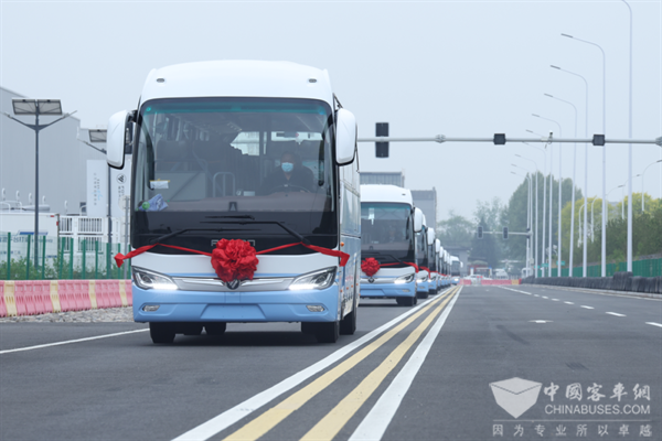 15台福田欧辉BJ6116城间客车批量交付上海弘晋