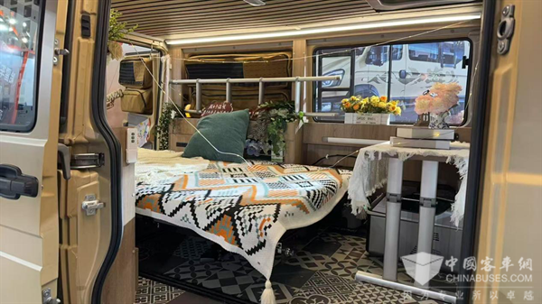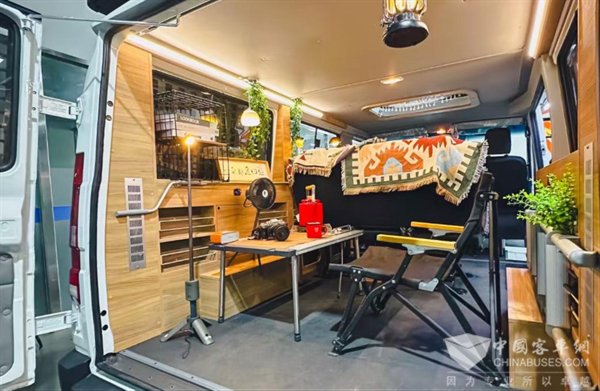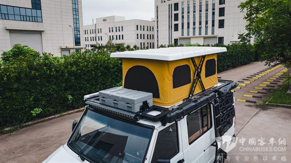 得意宿营车的非承载式车身以及超大内部空间,则为改装爱好者提供广阔的自由发挥空间。对于热衷于野钓的玩家而言,在车身外挂板加装鱼竿固定架,巧妙解决钓具收纳难题;偏爱骑行的露营者,在车顶行李架拓展自行车支架,抵达山区后便可尽情享受骑行的乐趣;聚会时,利用侧挂水箱和遮阳篷可以轻松搭建起一个临时的户外厨房;如果你享受独处的时光,还可DIY专属于你的创作空间。