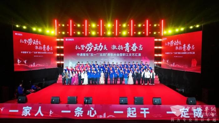 2025年4月29日,中通客车隆重举行“礼赞劳动美,激扬青春志”——“五一”“五四”表彰大会暨职工文艺汇演活动,表彰在企业改革发展中涌现出的先进集体和个人,传承劳模精神,弘扬五四力量!
