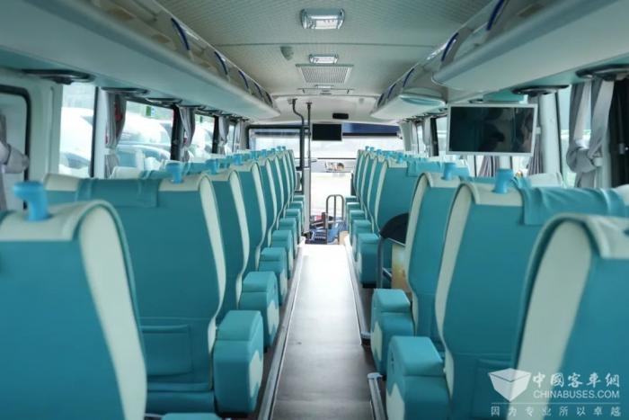 值得一提的是,此次交付的BJ6112城间客车还包含1+1豪华大商务车型,座椅采用1+1布局,配备豪华大商务座椅,空间更加宽敞舒适。车辆前部和中部装有LED液晶屏电视,可欣赏各类娱乐节目,让旅客旅途中尽享惬意。同时,车辆配备快充充电口和饮水机,旅客可随时为电子设备充电,畅饮解渴,确保长途旅行更加便捷舒心。