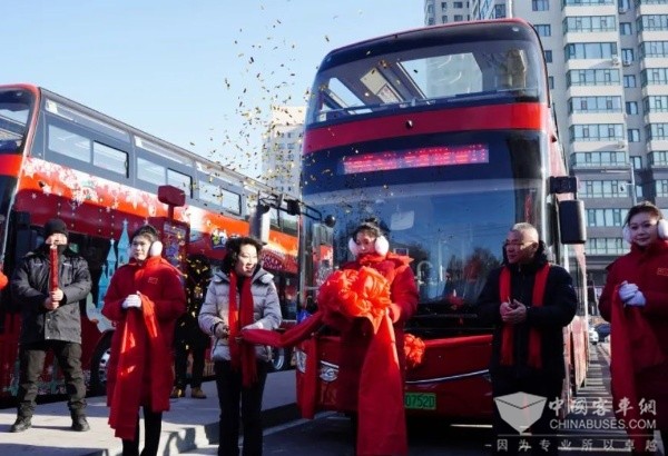 2024年冬季,安凯大红双层观光巴士在哈尔滨正式上线运营,沿三条特色线路穿梭,将中央大街、冰雪大世界等城市地标与热门旅游打卡地串联,成为冰城冬季旅游的亮眼“移动名片”。