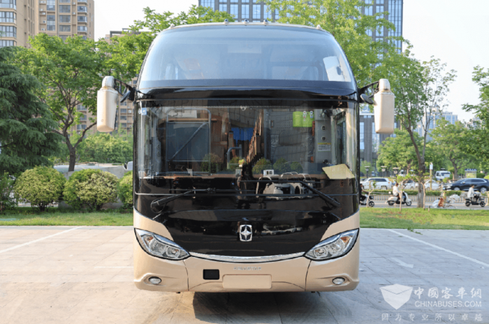 展车YBL6148H1QE外观线条简洁硬朗,车身平整如镜,顶部两侧LED凤眼灯带与尾部钻石造型镶嵌式灯组相互映衬,兼具时尚感与辨识度。
